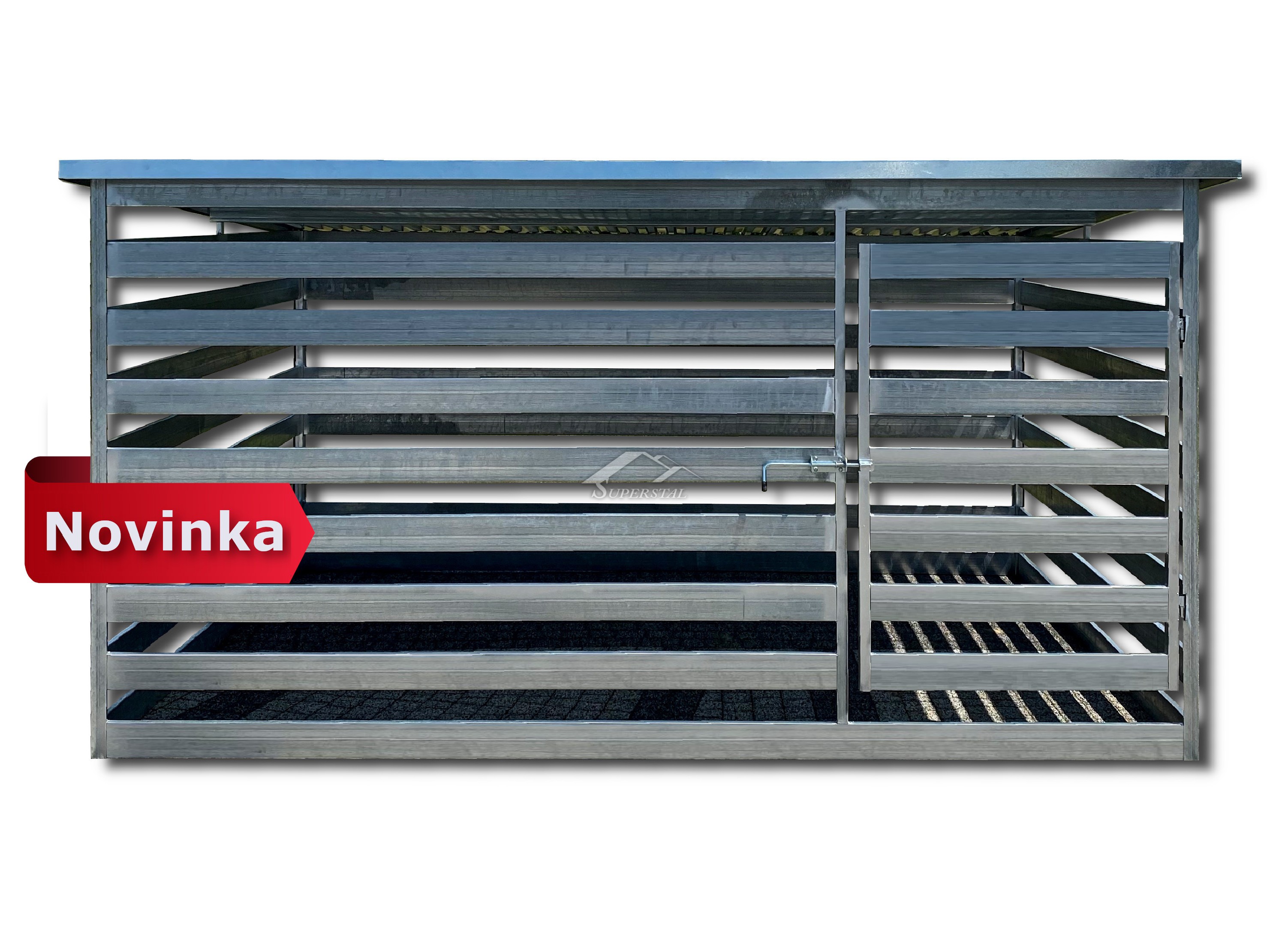 Kotec z jeklů 100 x 20, horizontálně poskládaných, vzdálenost mezi příčkami cca 9 cm.