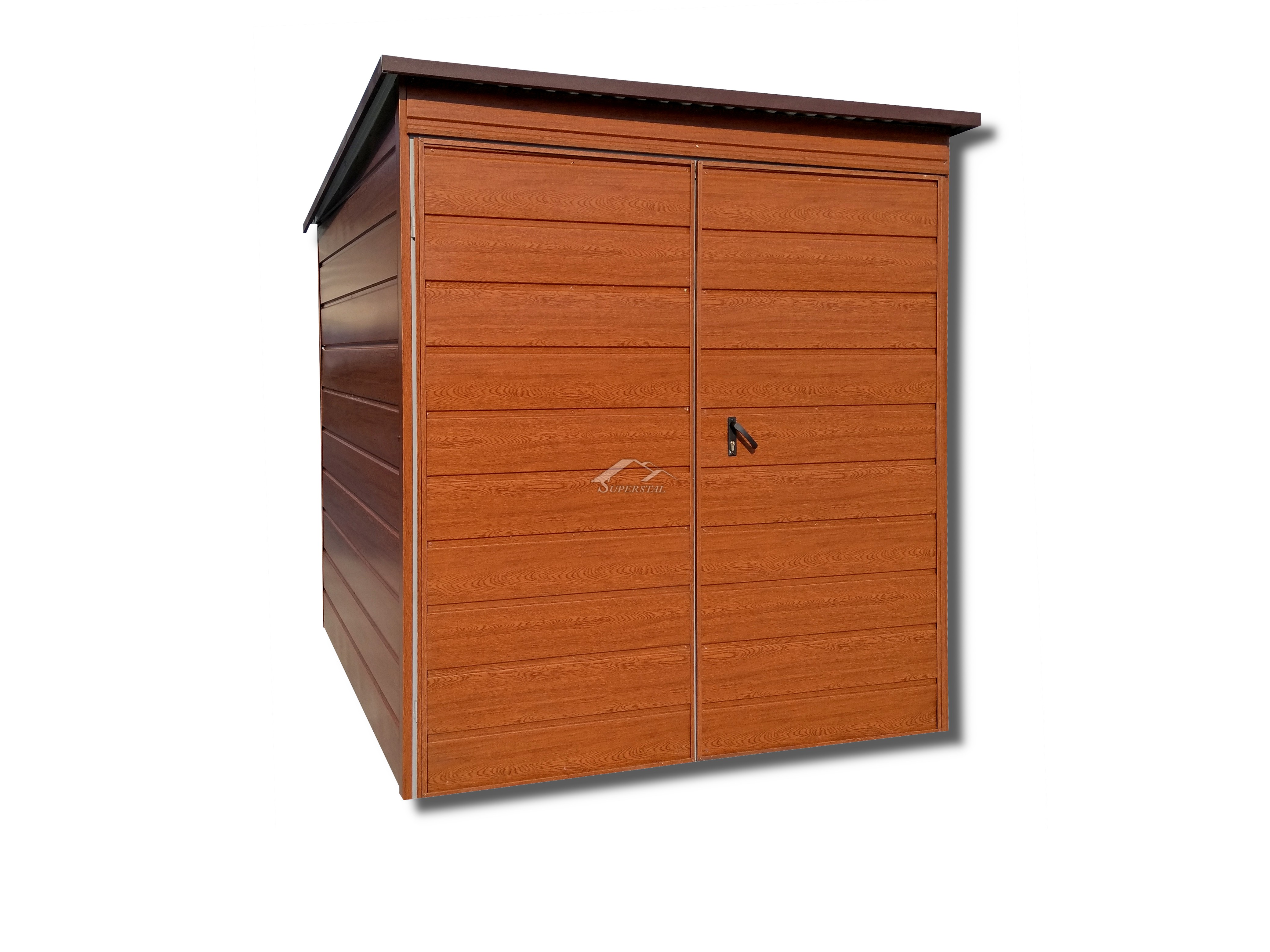 Plechová garáž 2x2 zadní spád, dvojkřídlá brána.