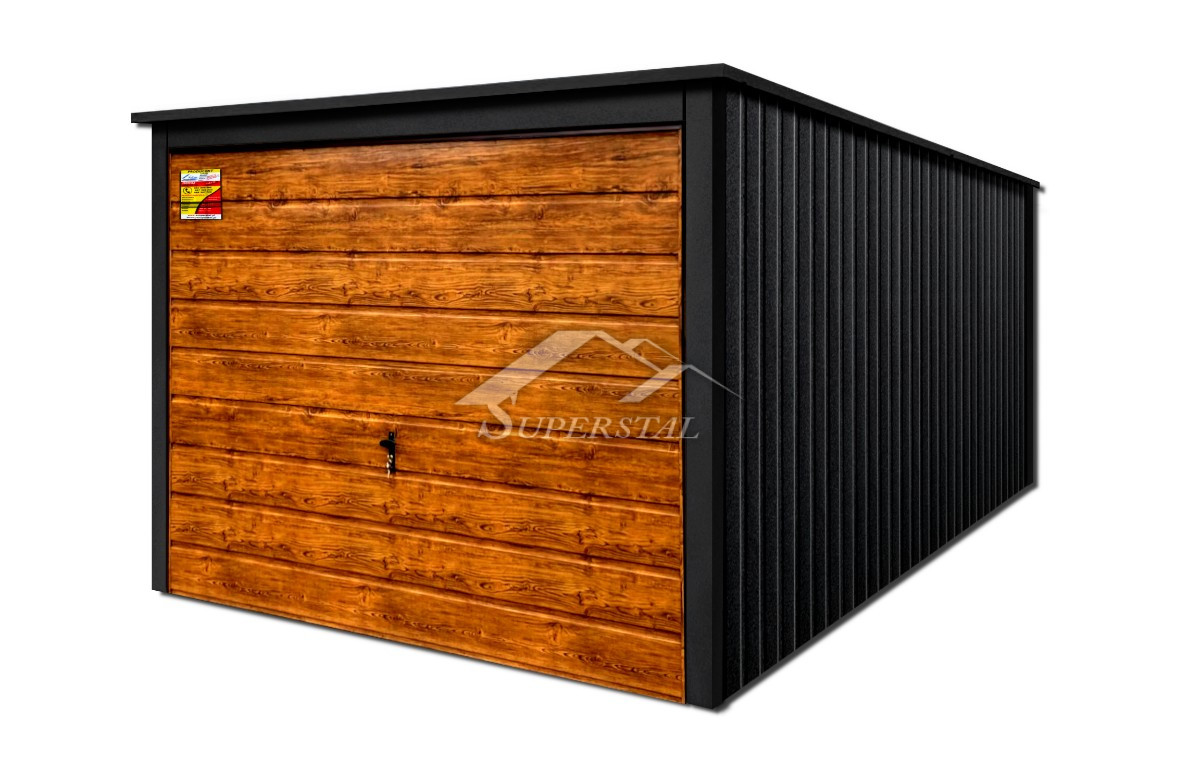 Nosná konstrukce garáže je z úhelníků a C profilů ohýbaných za studena. Pod střechou jsou použity C profily pro vyšší pevnost střechy. Celý plášť je z barevného plechu I. jakosti a je přinýtován k konstrukci hliníkovými nýty. Výklopná brána – ruční zdvih nahoru (možnost výběru dřevodekoru: borovice, ořech nebo zlatý dub). V dolních rozích po obou stranách brány jsou pružiny pro usnadnění zvedání.