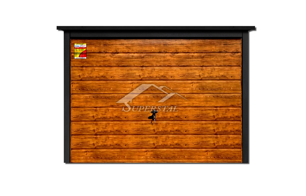 GARÁŽ LUX 2×4 – SPÁD STŘECHY DOZADU, VÝKLOPNÁ BRÁNA S DEKOREM DŘEVA, KOVÁNÍ KOLEM STŘECHY A ROHŮ Pokud hledáte moderní design a důraz na nejmenší detaily, nemohli jste narazit na lepší nabídku! Nabízeným produktem je inovativní plechová garáž ze série LUX o rozměrech 2×4.