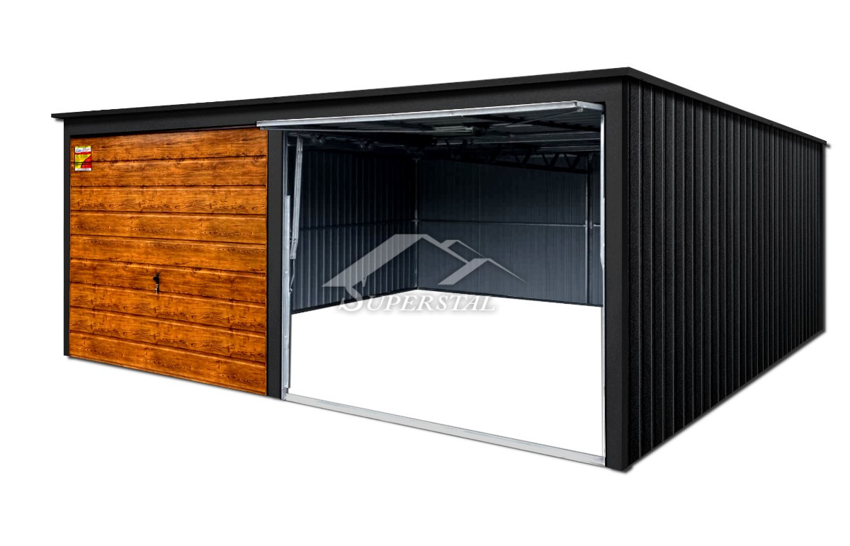 GARÁŽ LUX 6×5 – SPÁD STŘECHY DOZADU, VÝKLOPNÉ BRÁNY S DEKOREM DŘEVA, KOVÁNÍ KOLEM STŘECHY A ROHŮ Pokud hledáte moderní design a důraz na nejmenší detaily, nemohli jste narazit na lepší nabídku! Nabízeným produktem je inovativní plechová garáž ze série LUX o rozměrech 6×5.