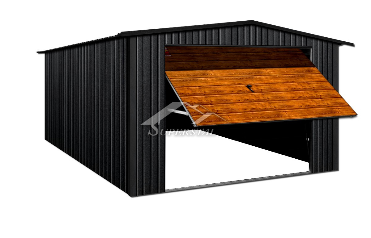 GARÁŽ LUX 5×5 – SEDLOVÁ STŘECHA, VÝKLOPNÁ BRÁNA S DEKOREM DŘEVA, KOVÁNÍ KOLEM STŘECHY A ROHŮ Pokud hledáte moderní design a důraz na nejmenší detaily, nemohli jste narazit na lepší nabídku! Nabízeným produktem je inovativní plechová garáž ze série LUX o rozměrech 5×5.