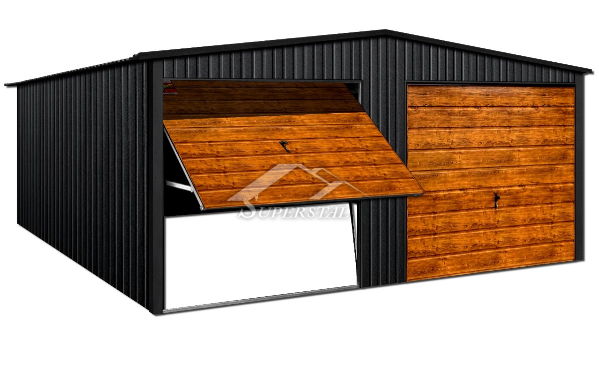GARÁŽ LUX 7×8 – SEDLOVÁ STŘECHA, VÝKLOPNÉ BRÁNY S DEKOREM DŘEVA, KOVÁNÍ KOLEM STŘECHY A ROHŮ Pokud hledáte moderní design a důraz na nejmenší detaily, nemohli jste narazit na lepší nabídku! Nabízeným produktem je inovativní plechová garáž ze série LUX o rozměrech 7×8.
