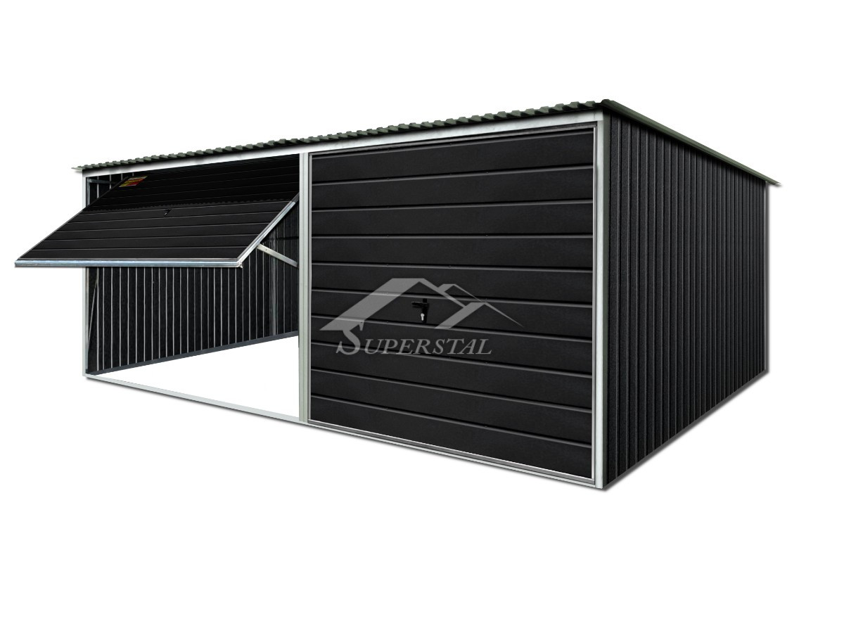 GRAFITOVÁ PLECHOVÁ GARÁŽ LUX 6×4 – SPÁD STŘECHY DOZADU, VÝKLOPNÉ BRÁNYPokud hledáte moderní design a důraz na nejmenší detaily, nemohli jste narazit na lepší nabídku! Nabízeným produktem je inovativní plechová garáž ze série LUX bez kování o rozměrech 6×4.
