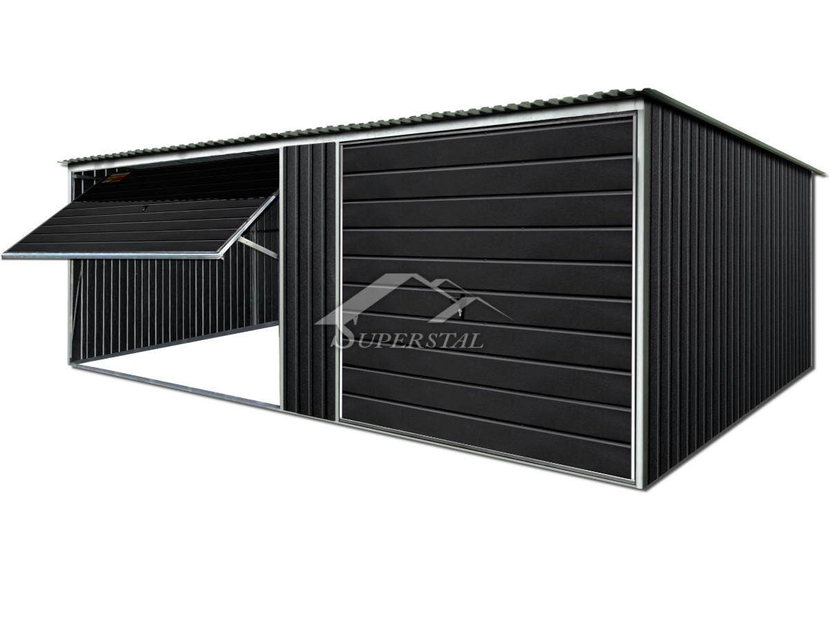 GRAFITOVÁ PLECHOVÁ GARÁŽ LUX 7×4 – SPÁD STŘECHY DOZADU, VÝKLOPNÉ BRÁNYPokud hledáte moderní design a důraz na nejmenší detaily, nemohli jste narazit na lepší nabídku! Nabízeným produktem je inovativní plechová garáž ze série LUX bez kování o rozměrech 7×4.
