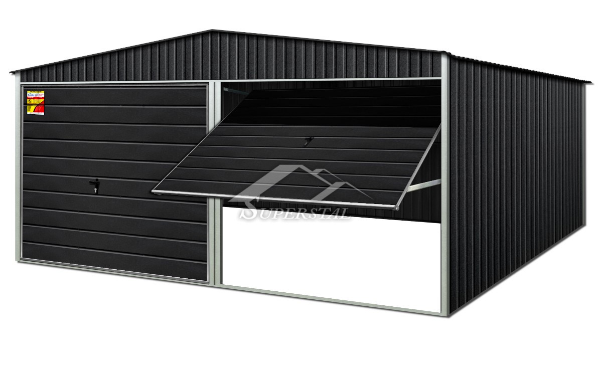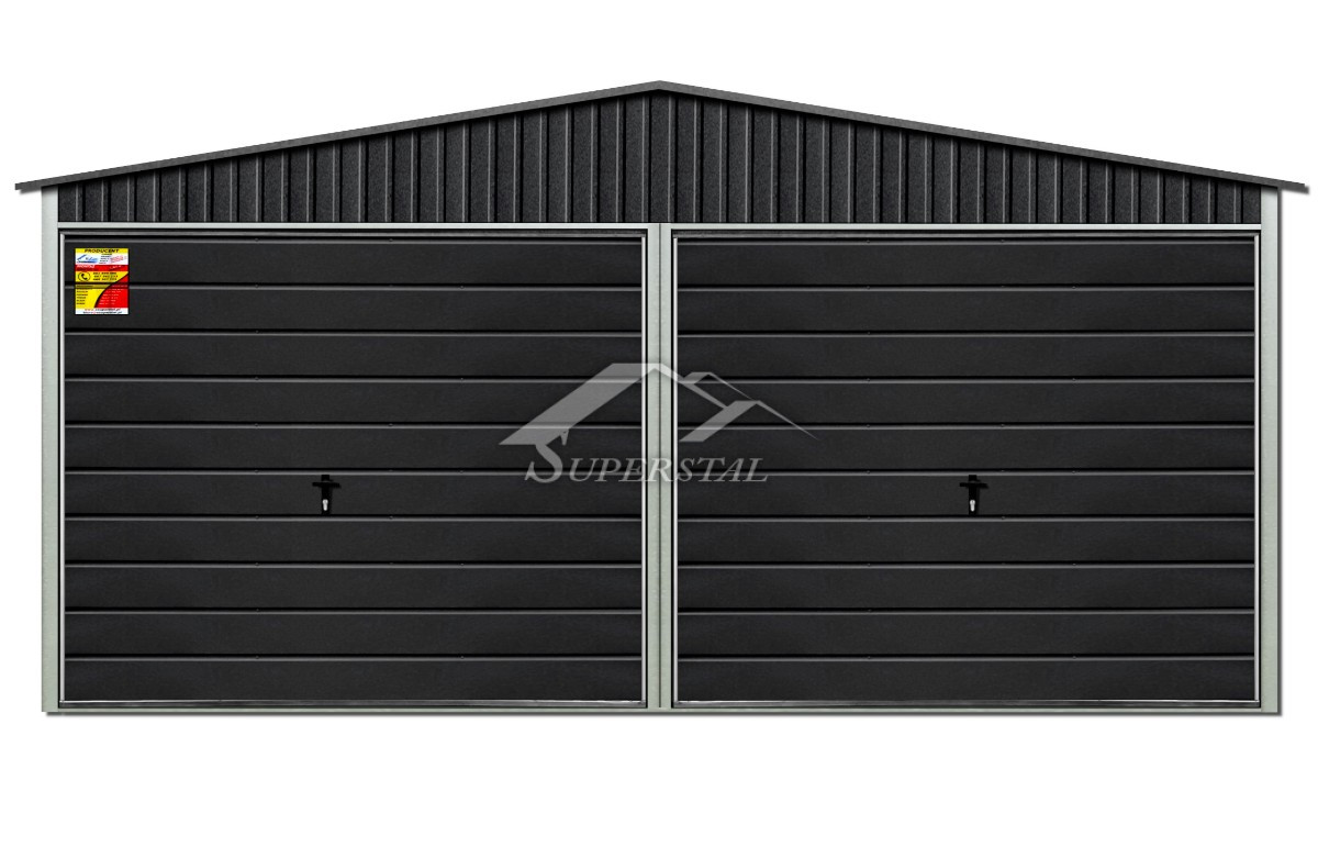 GRAFITOVÁ PLECHOVÁ GARÁŽ LUX 6×5 – SEDLOVÁ STŘECHA, VÝKLOPNÉ BRÁNYPokud hledáte moderní design a důraz na nejmenší detaily, nemohli jste narazit na lepší nabídku! Nabízeným produktem je inovativní plechová garáž ze série LUX bez kování o rozměrech 6×5.