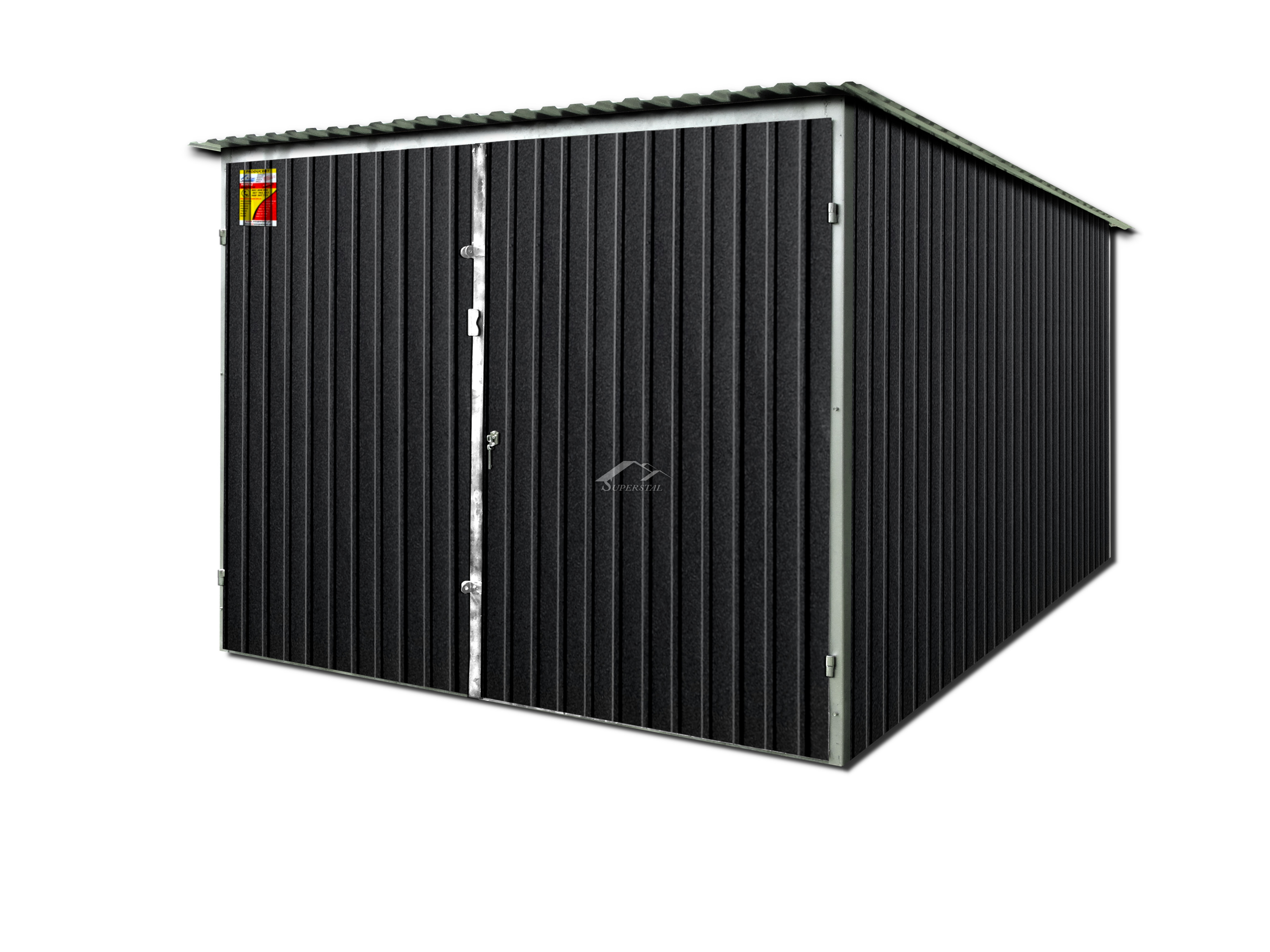 GRAFITOVÁ BAREVNÁ PLECHOVÁ GARÁŽ 3X4 – SPÁD STŘECHY DOZADU, DVOUKŘÍDLOVÁ BRÁNABarevná plechová garáž je skvělou volbou pro zákazníky, kteří hledají cenově dostupné řešení a současně chtějí moderní vzhled.