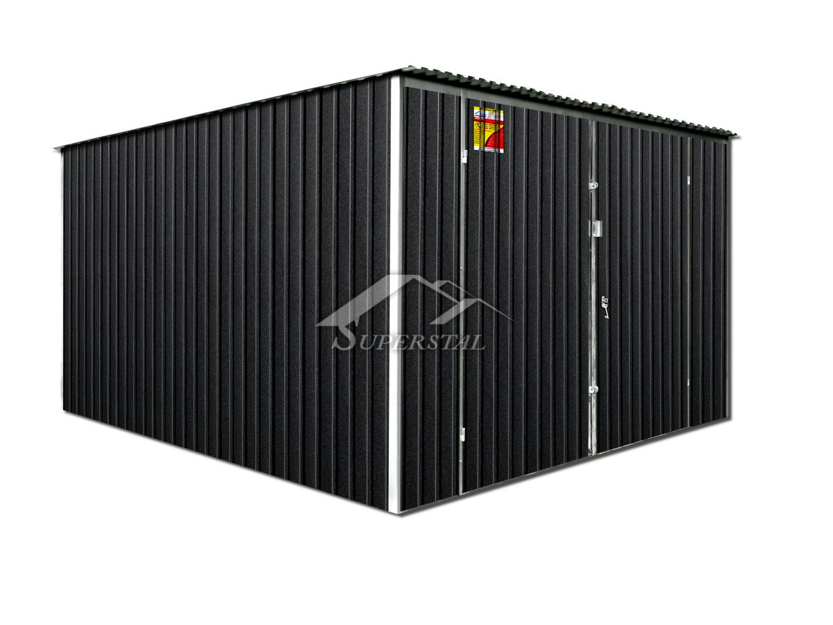 GRAFITOVÁ BAREVNÁ PLECHOVÁ GARÁŽ 4X7 – SPÁD STŘECHY DOZADU, DVOUKŘÍDLOVÁ BRÁNABarevná plechová garáž je skvělou volbou pro zákazníky, kteří hledají cenově dostupné řešení a současně chtějí moderní vzhled.