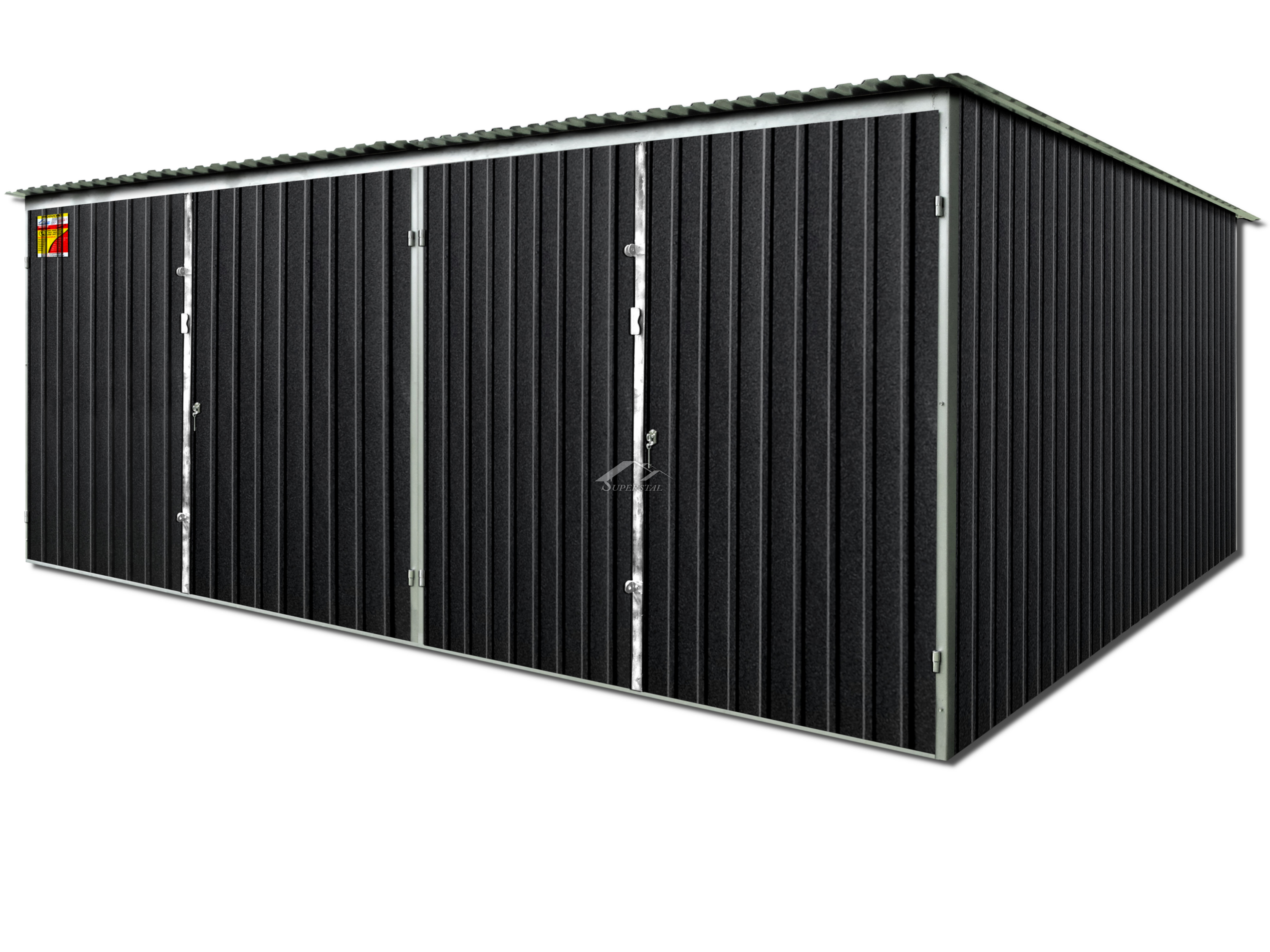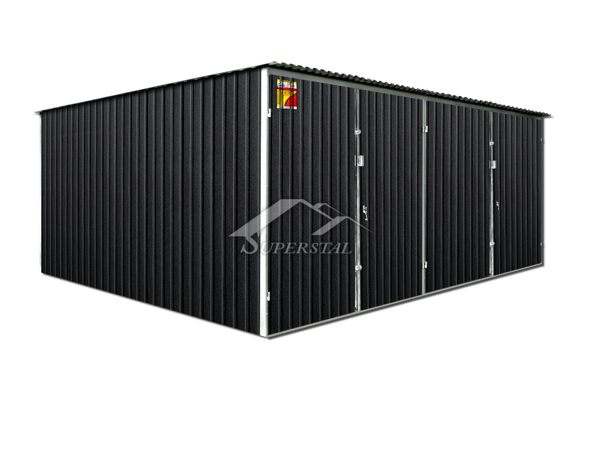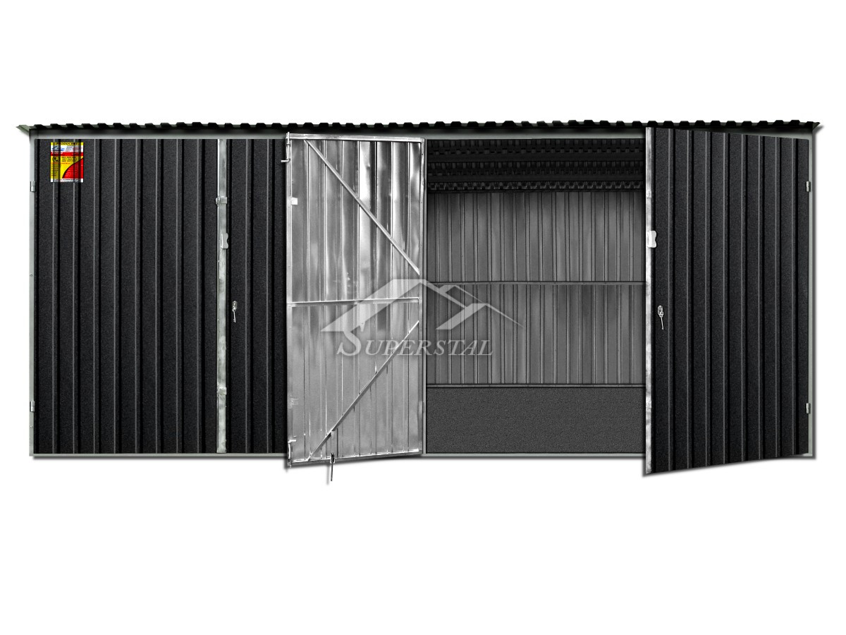 GRAFITOVÁ BAREVNÁ PLECHOVÁ GARÁŽ 6X7 – SPÁD STŘECHY DOZADU, DVOJKŘÍDLÉ BRÁNYBarevná plechová garáž je skvělou volbou pro zákazníky, kteří hledají cenově dostupné řešení a současně chtějí moderní vzhled.