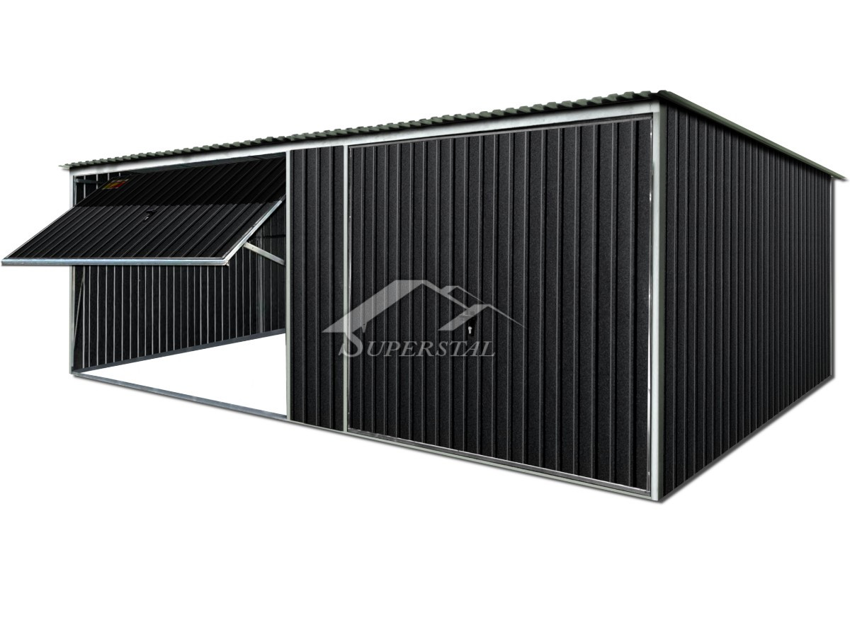 GRAFITOVÁ BAREVNÁ PLECHOVÁ GARÁŽ 7X6 – SPÁD STŘECHY DOZADU, VÝKLOPNÉ BRÁNYBarevná plechová garáž je skvělou volbou pro zákazníky, kteří hledají cenově dostupné řešení a současně chtějí moderní vzhled.