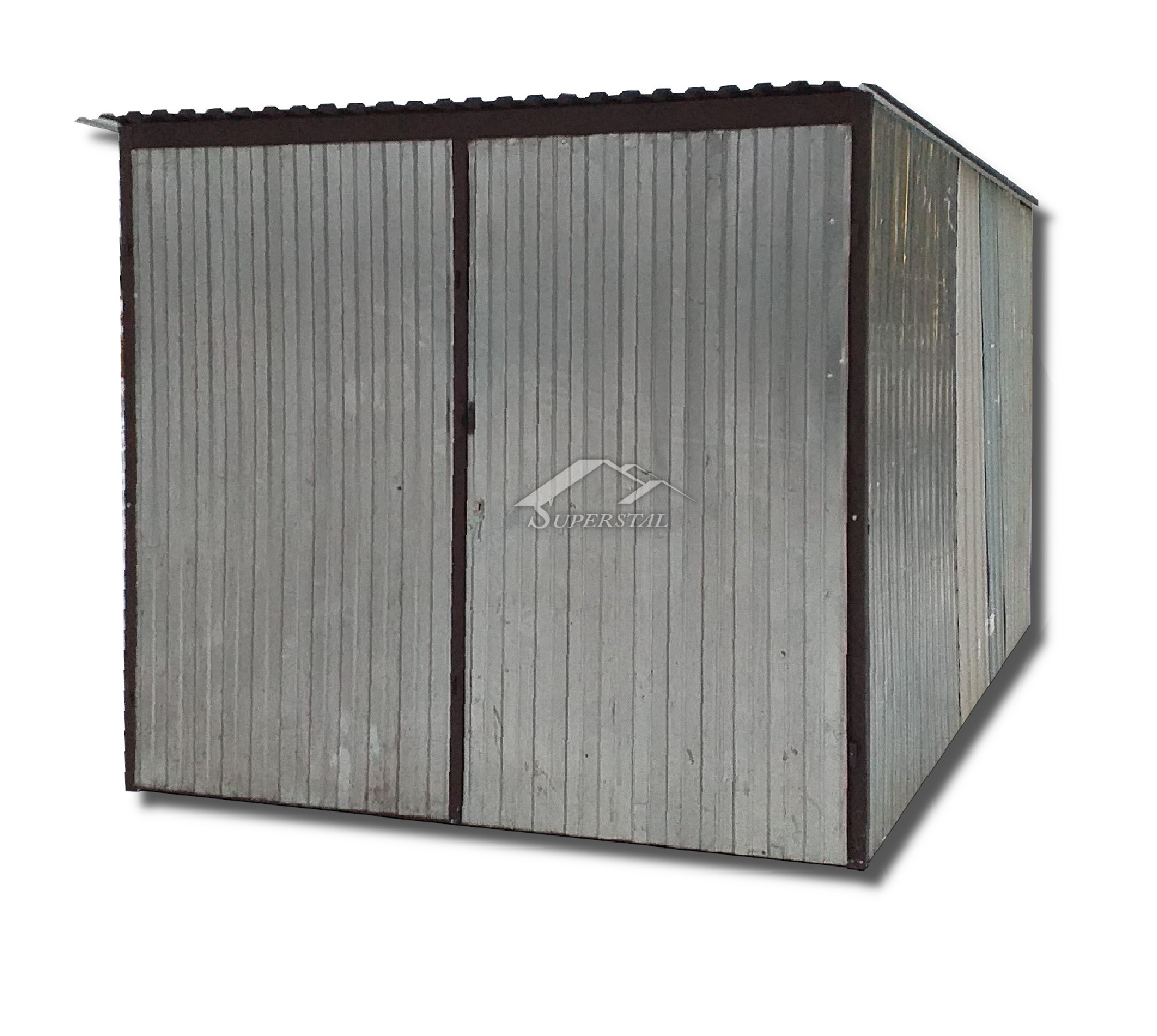 Ocelová garáž 2x3 , 2 jakostní třída, ocel pozink, sklon střechy dozadu s dvoukřídlými vraty.Výrobek vhodný pro stavbu.