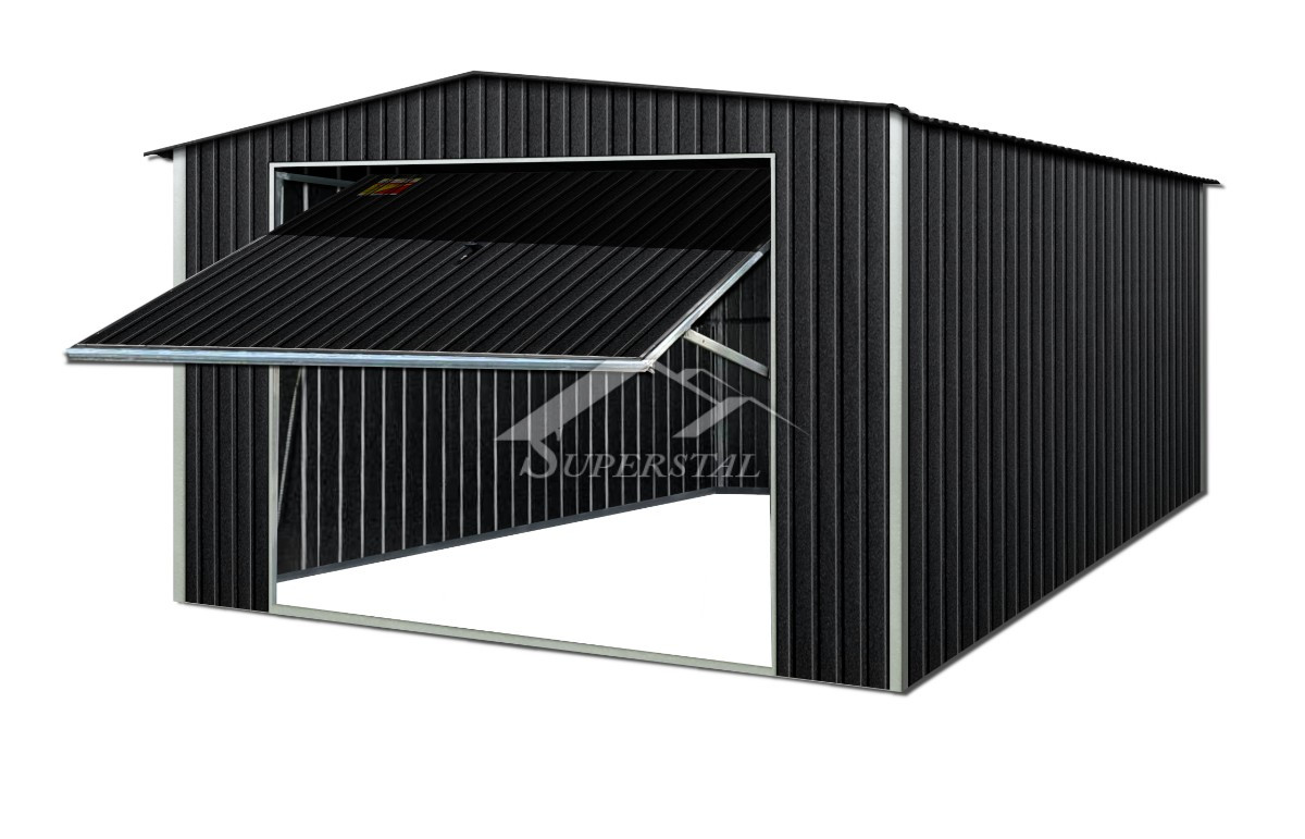 GRAFITOVÁ BAREVNÁ PLECHOVÁ GARÁŽ 5X7 – SEDLOVÁ STŘECHA, VÝKLOPNÁ BRÁNABarevná plechová garáž je skvělou volbou pro zákazníky, kteří hledají cenově dostupné řešení a současně chtějí moderní vzhled.